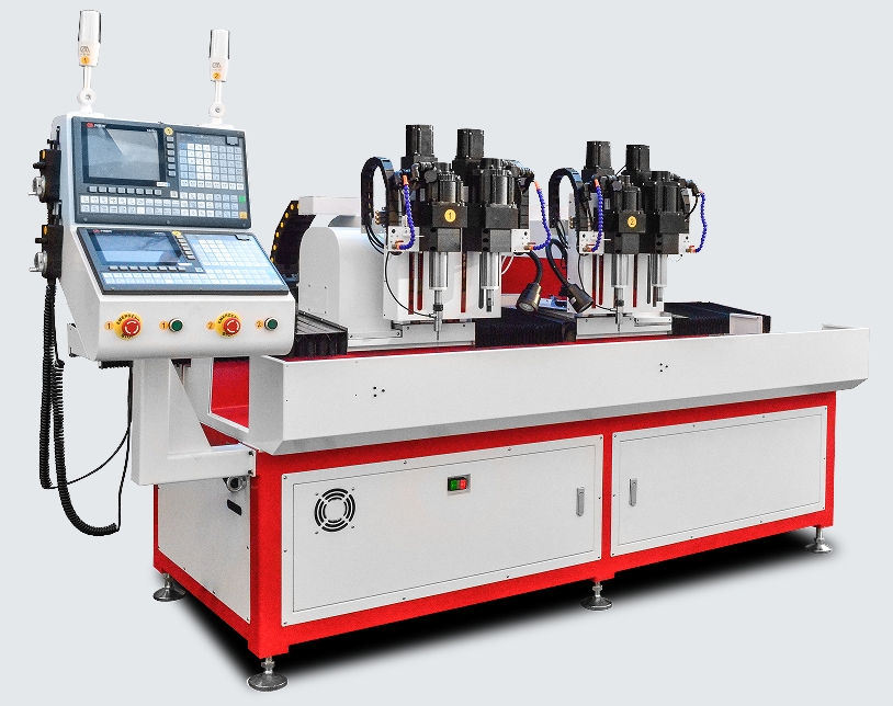 這是一臺(tái)來自浙江客戶定制的智能數(shù)控雙軸倒角機(jī),雙工位同時(shí)檢測(cè)并補(bǔ)償平面度后再進(jìn)行倒角加工。