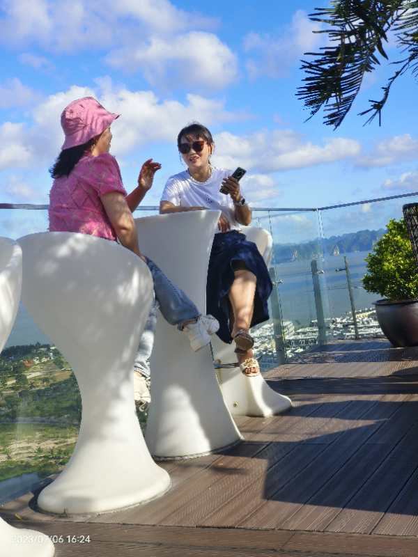 晚上入住的下龍灣五星級酒店十分豪華,房間布置豪華漂亮,打開窗簾面向大海,更有特色的是樓頂有游泳池、咖啡廳等,可以上去游泳、邊喝咖啡邊靠在椅子上觀看整個下龍灣的夜景,這也是拍照的絕佳好去處,公司男同事忙著游泳、女同事則忙著合影留念,忙的不亦樂乎。